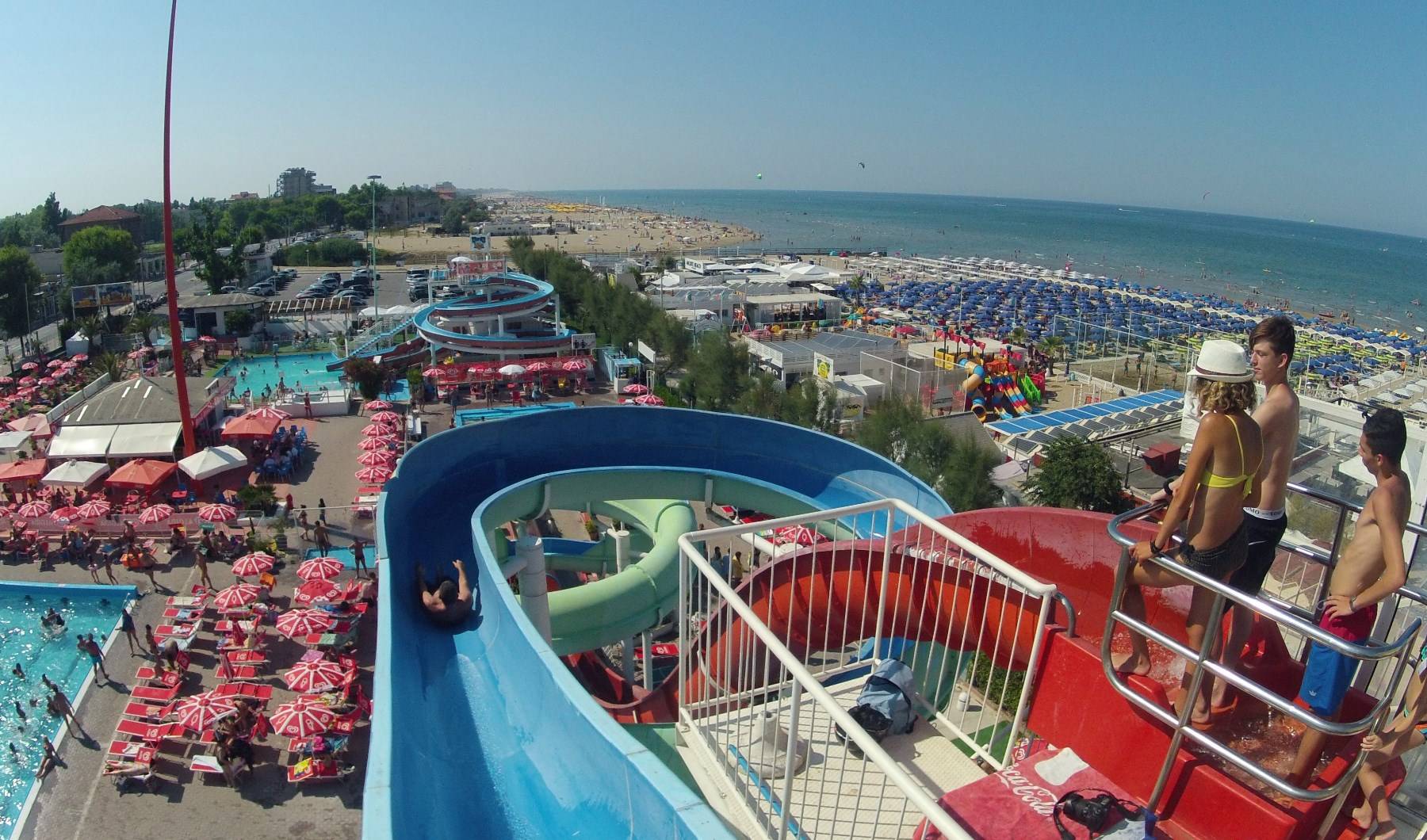 E se i bimbi hanno voglia di tuffarsi in piscina, a soli 2 minuti a piedi dall’Hotel ecco il Beach Village! Qui hai l’ingresso gratuito e puoi goderti la piscina d’acqua salata, quattro acquascivoli, due grandi piscine con animazione e miniclub!